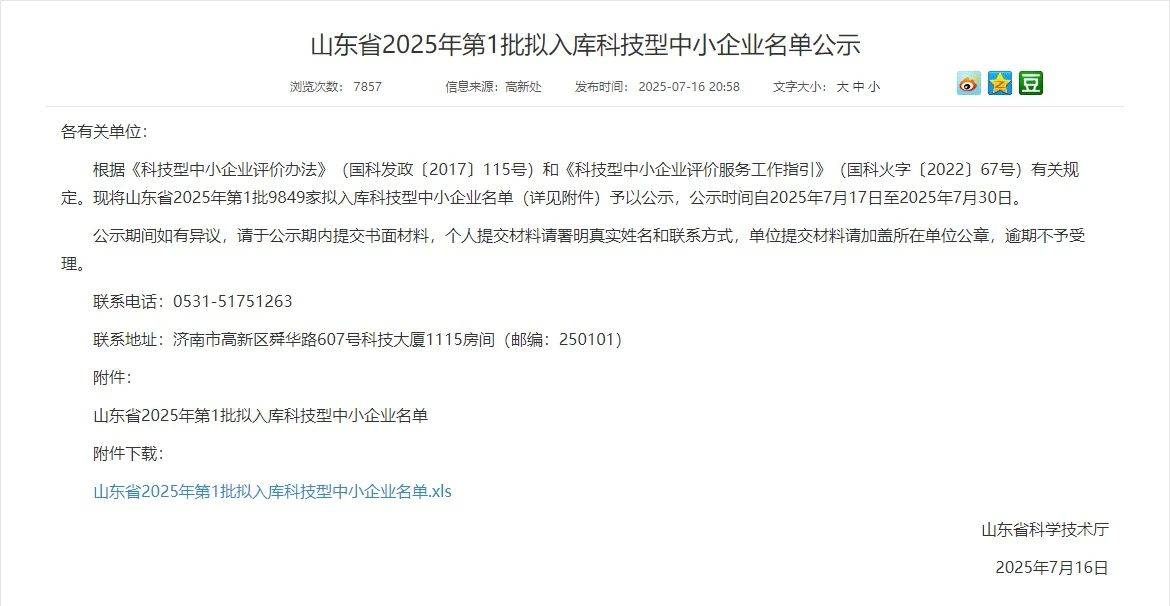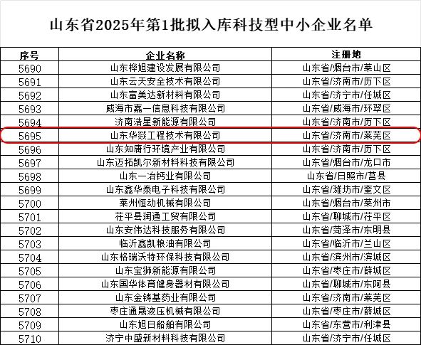 近日,山东省科技厅正式公布了2025年第一批拟入库科技型中小企业名单,华燚工程凭借创新的技术实力、持续的研发投入和卓越的成果转化能力,再次入选该名单!这是对华燚在科技创新领域的高度认可,也标志着我们在专业化、精细化、特色化发展道路上迈出了坚实的一步。